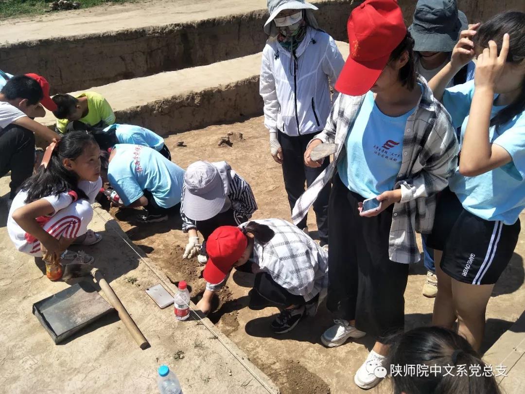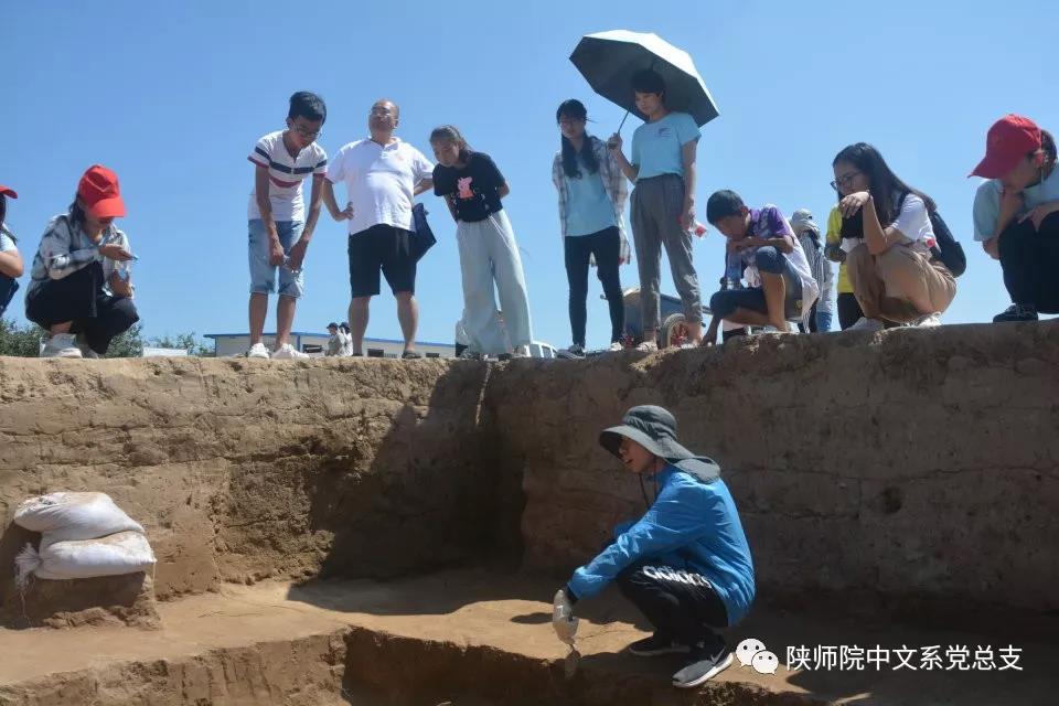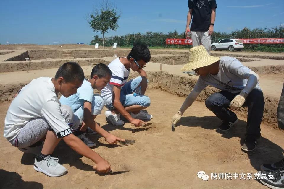 为进一步加强校际交流与合作,开拓学生视野,提升学生对考古文化的了解与认知,7月24日,在中文系党总支书记杨阳、系主任牛文明、副书记孔养涛的带领下,筑梦马栏三下乡社会实践队全体成员以及马栏齐心九年制寄宿学校11名学生共赴西北大学文化遗产学院古豳地考古综合实习基地开展社会实践,近距离接触考古,感知旬邑古文化。