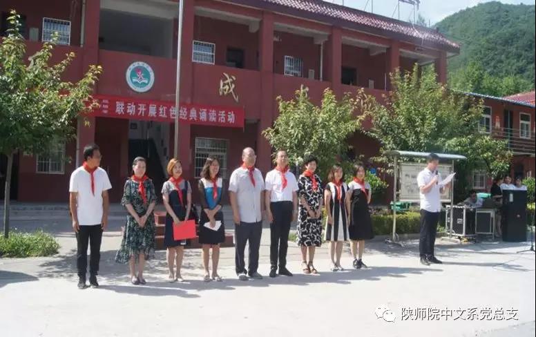 为迎接建党97周年,学习和落实习近平总书记5月30日给照金北梁红军小学的回信精神,6月14日下午,中文系师生一行在系主任牛文明、副主任赵燕、教学秘书王娟带领下来到照金北梁红军小学,开展了主题为“红色经典师生诵、红色精神代代传”的革命传统作品诵读活动。耀州区教研室主任、正高级教师党全明,陕西省特级教师陈阿莉、付春平,北梁红军小学副校长陶建刚出席活动。