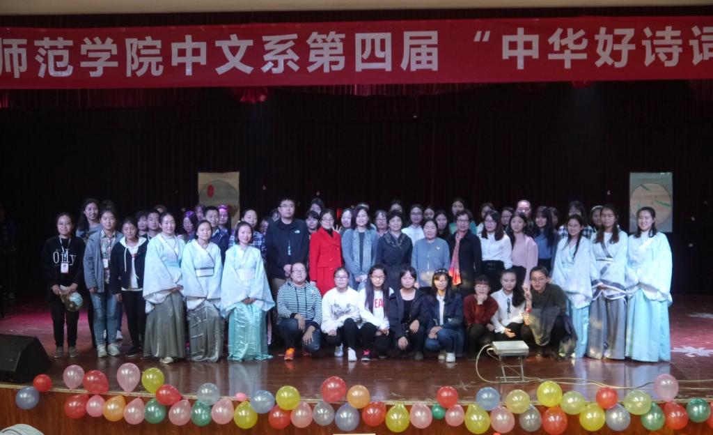 为丰富校园生活,提升学生文化底蕴,11月8日,中文系第四届“中华好诗词”背诵大赛在学校学生活动中心隆重举行。外语系党总支书记张慧军、教科院党总支副书记苏群、生科院党总支副书记宋金山、学校团委副书记薛腾、中文系邵芝茜、梁英平、杨亚娟、胡世强老师出席大赛并担任大赛评委。来自外语系、教科院、生科院、中文系的共计400余名同学观看了比赛。