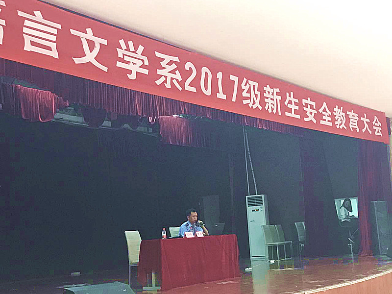 根据《中文系2017级新生入学教育实施方案》的要求和安排,为进一步提高新生的安全意识,普及安全知识,增强学生安全防范和自我保护能力,9月24日下午,中文系与学校保卫处联合召开2017级新生安全教育大会,邀请西安市公安局文化保卫支队副大队长曹扬警官对全体新生进行安全教育专题讲座。大会由中文系党总支副书记孔养涛主持。