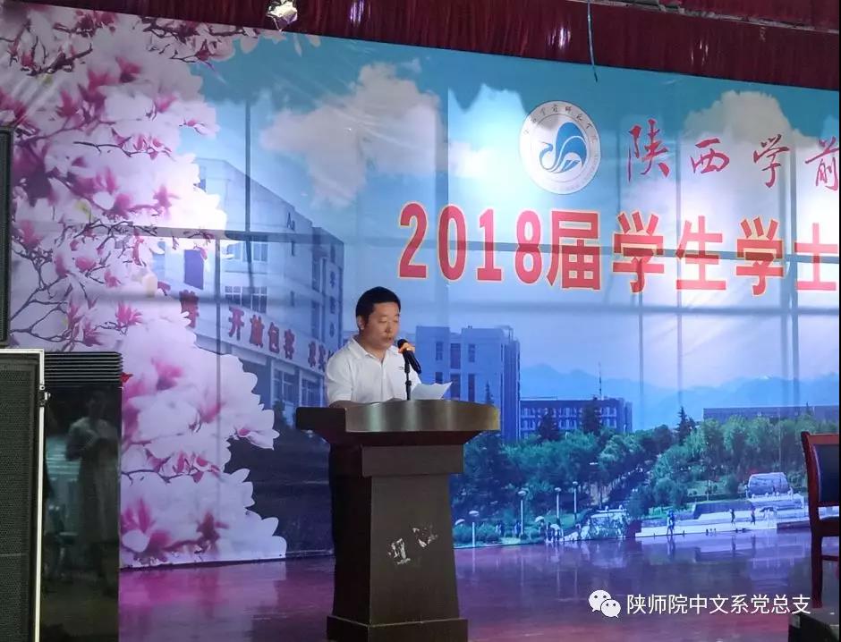 6月28日下午,中文系2018届学士学位授予仪式在学校大学生活动中心隆重举行。系主任牛文明博士、总支书记杨阳、副书记孔养涛、副主任赵燕、教师代表以及2018届汉语言文学专业毕业生参加了仪式。仪式由系党总支副书记孔养涛主持。