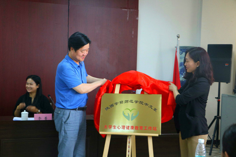 学校大学生心理健康与指导中心主任李菁代表学工部宣读了《关于同意中文系成立大学生心理健康工作站的批复》,中文系大学生心理健康教育工作站副站长王黎宣读了《中文系关于成立大学生心理健康教育工作站的通知》,学工部部长史保怀教授和中文系党总支杨阳书记共同为中文系大学生心理健康教育工作站揭牌。